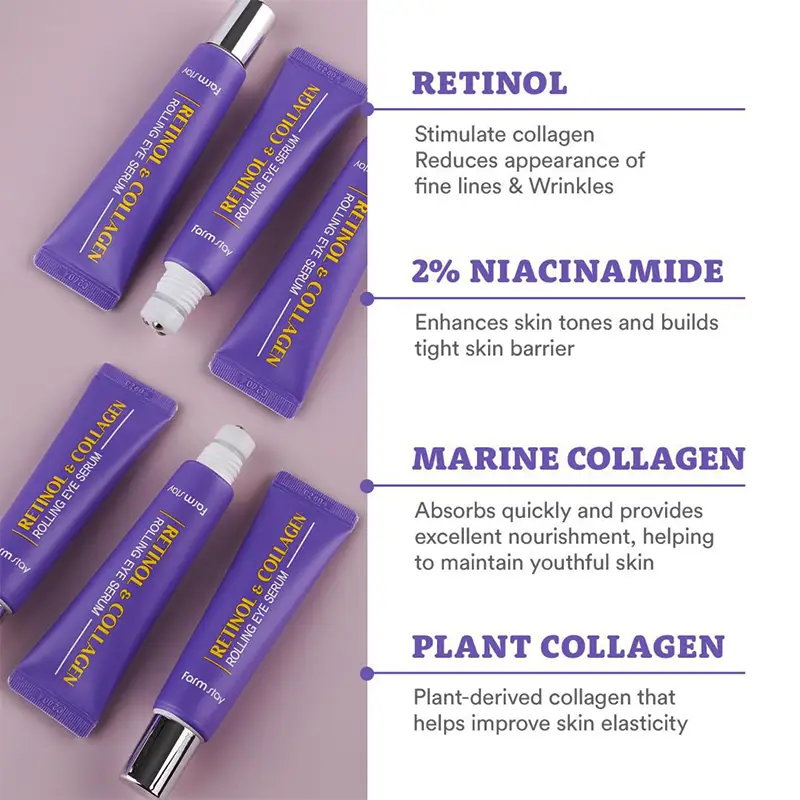 سرم دور چشم رولی رتینول و کلاژن فارم استیFarmStay Retinol&Collagen Rolling Eye Serum