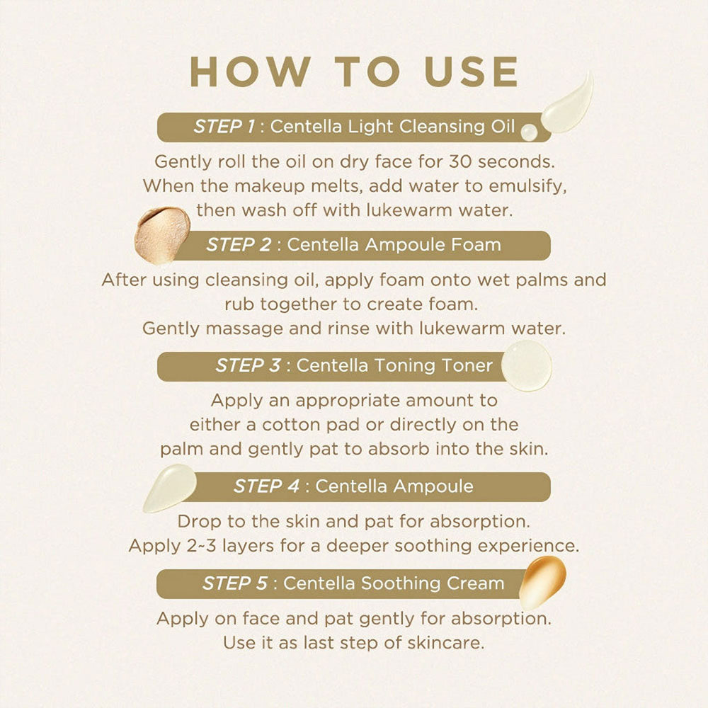 این پک ویژه تابستانه شامل شوینده روغنی 30 میل، فوم شستشوی 20 میل، تونر 210 میل، آمپول 55 میل و ژل کرم 75 میلی لیتر از لاین تسکین دهنده و ترمیم کننده سنتلا اسکین 1004 می باشد.