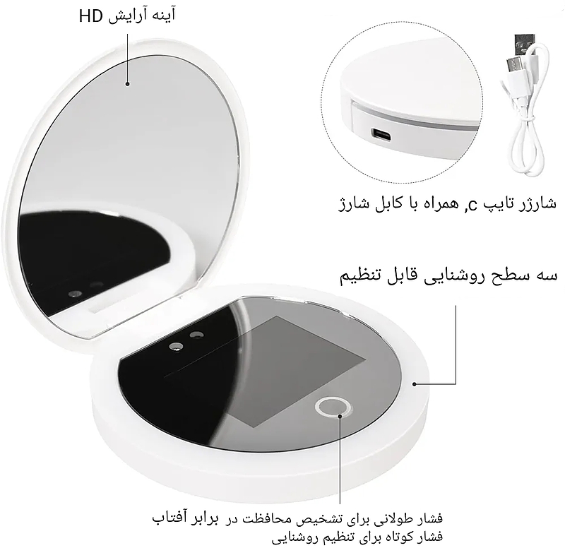 آینه تست ضد آفتاب با دوربین uv آینه آرایشی قابل حمل مسافرتی