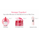 کرم کپسولی تزانگزامیک اسید و نیاسینامید مدی کیوب Medicube TXA Niacinamide Capsule Cream با فرمولی نوآورانه و اثربخش، راهکاری کامل و تخصصی برای پوست های دارای لک، تیرگی، ناهمواری و رنگ پوست ناهماهنگ ارائه میدهد. این محصول کره ای با بهرهگیری از کپسول هایی حاوی سه ترکیب کلیدی آلفا آربوتین، ترانگزامیک اسید و نیاسینامید، به صورت همزمان به روشن شدن پوست، یکنواخت سازی رنگ و کاهش لکه های مقاوم مانند ملاسما و لک های کبدی کمک می کند. فناوری کپسولی این ترکیبات فعال، جذب و پایداری آن ها را در پوست افزایش داده و اثرگذاری آن ها را به شکل چشمگیری بهبود می بخشد.