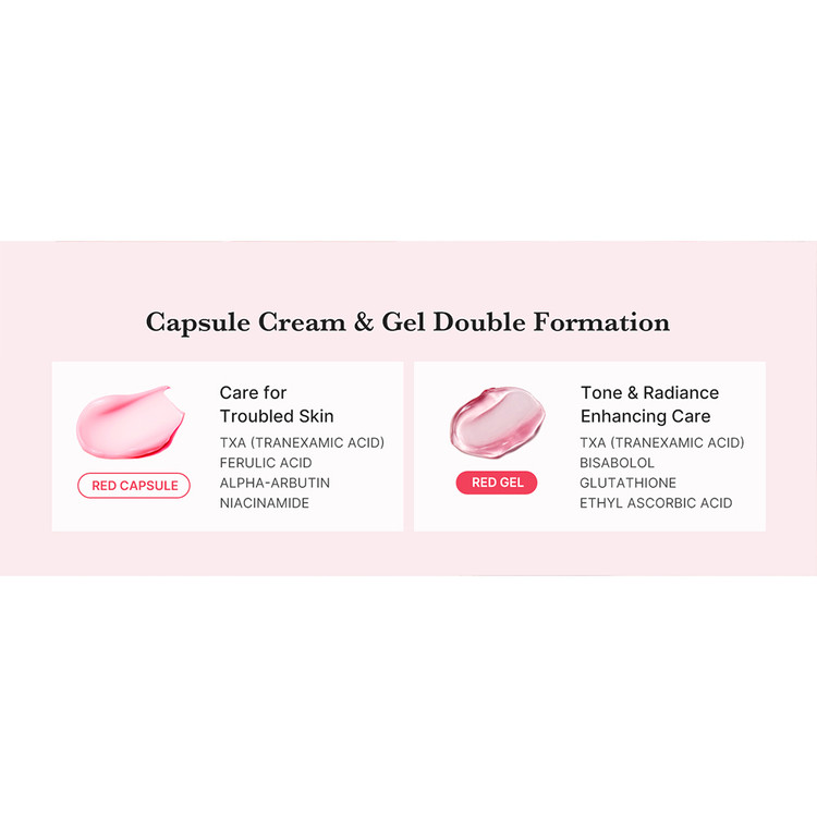 - حاوی کپسول هایی با ترکیب آلفا آربوتین، ترانگزامیک اسید و نیاسینامید جهت ایجاد پوستی روشن، یکدست و شفاف