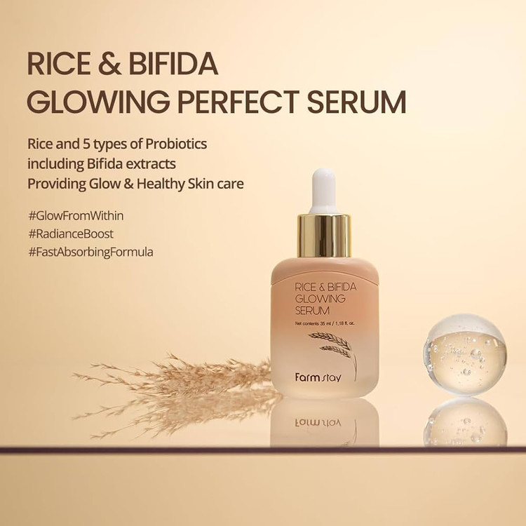 سرم روشن کننده برنج فارم استی اصل حجم35میل FARMSTAY RICE & BIFIDA Glowing Serum, 35 ml